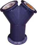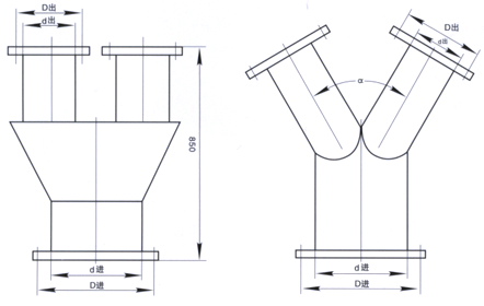 1)分料三通进出法兰尺寸参照管道法兰尺寸.2)进口管夹角可根据用户要求定制.
